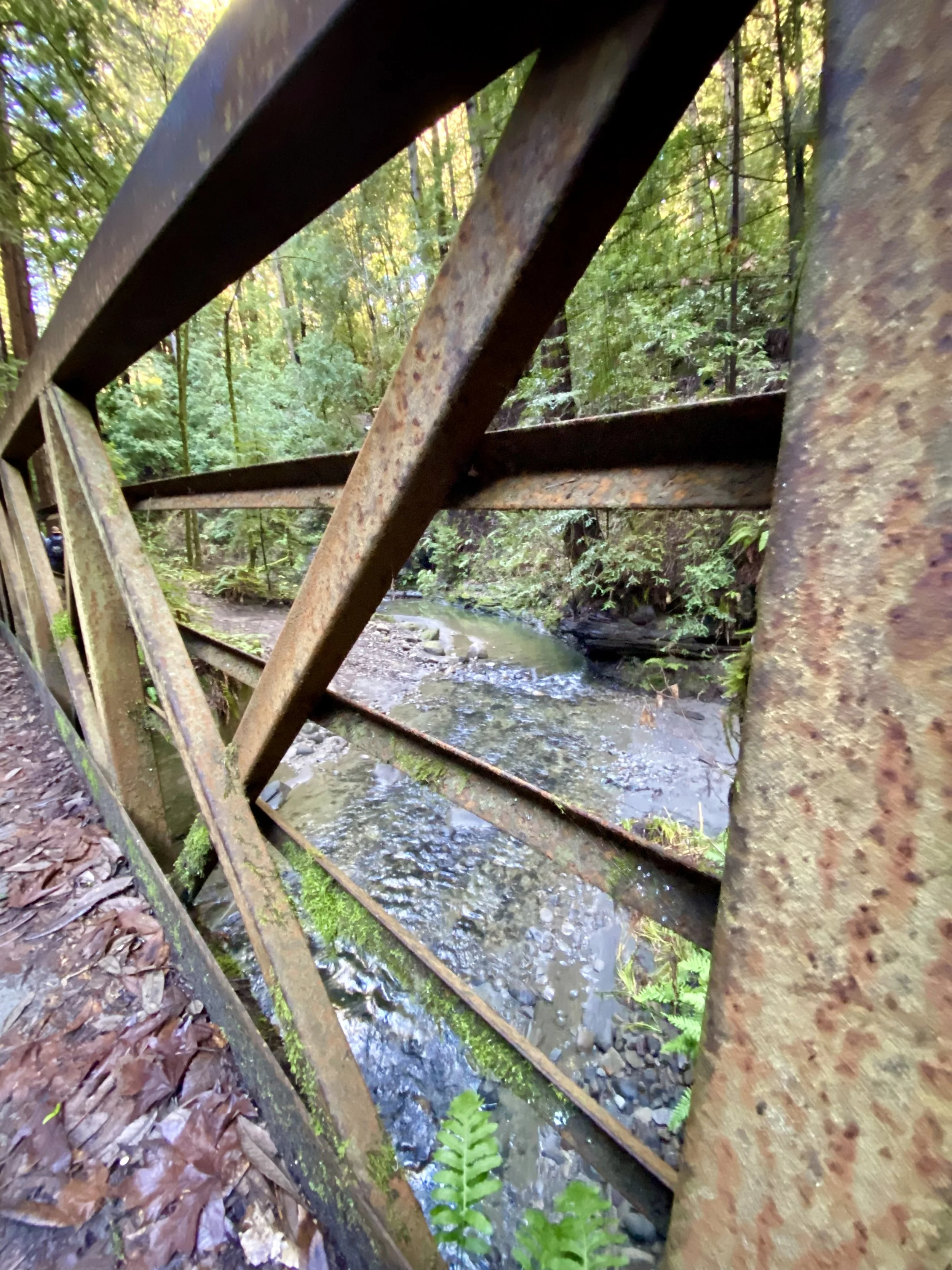⛰ The Loma Prieta Epicenter is not the easiest to find. Using an App like Alltrails.com, or something similar, is very helpful in the Forest of Nisene Marks. I recommend downloading the trail before you enter the park. You can find a .GPX file below. The trail starts along Aptos Creek Fire Road at one of the various parking areas. If you’d like a longer hike, about 8-9 miles, you can start near the kiosk. If you’d like something a little shorter, about 6.5 - 7 miles, start at George’s Picnic area, just before the Steel Bridge or even shorter, about 4 miles, start at the Porter Family Picnic Area.. An out and back hike starting on a very well travelled, popular dirt road into Nisene Marks. The trail will take a turn off Aptos Creek Fire Road, across a river and onto a single track trail through the forest. Overall, you’ll climb about 300’ in elevation so its a leisurely hike through the “woods”. I’d rate this hike as “Greenish-Blue” due to the distance (depending where you start) and a few obstacles. It’ll take about 2.5 hours to complete for the 7 mile route, but don’t be in a rush. There’s a lot to see along this trail. Take it all in!