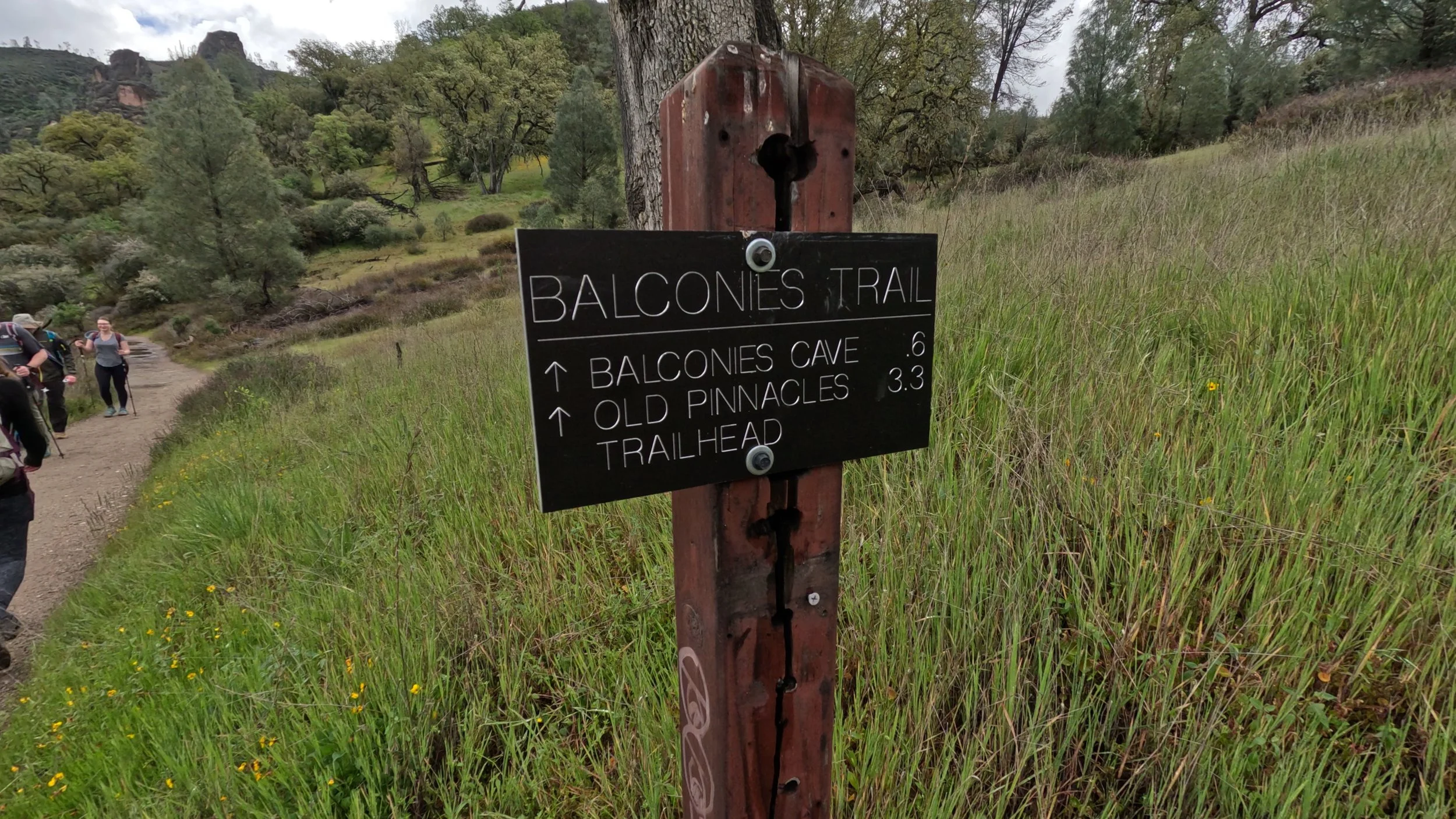 Starting at the Chaparral parking area follow the signs to the trailhead. You’ll meander down a well travelled dirt path towards the large rocky cliffs of the Balconies and Machete Ridge. It makes for a great view. You may also notice wildflowers blooming along the trail and in the meadows as you cross a few bridges over seasonal streams before get to the rocks.
