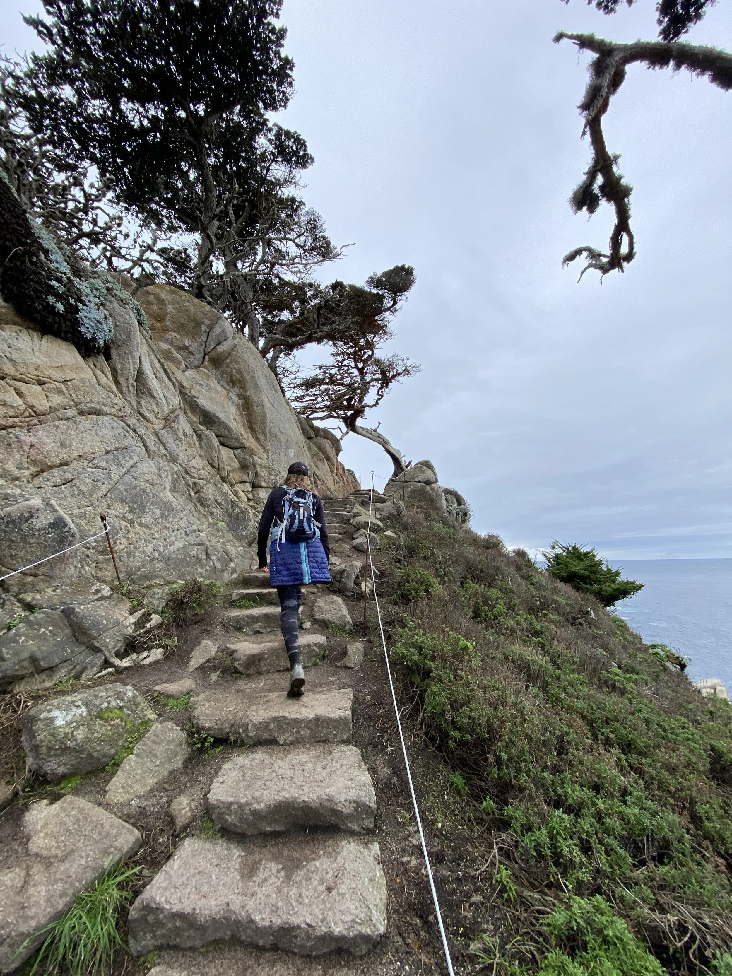 🥾Point Lobos can be very busy. Get there early! Parking can be very difficult and fills up quickly. We choose to start our hikes outside the gate and walk in. Walking in is free, just be careful when walking along the Highway.